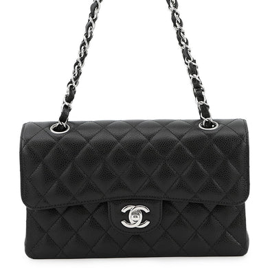 CHANEL Matelasse W Flap ChainShoulder Bag BlackA01113 Caviar Leather Size 23