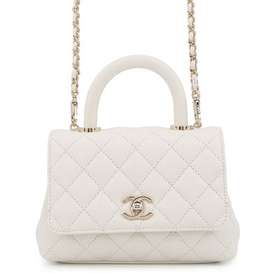 CHANEL Matelasse Coco Handle WhiteAS2215 Caviar Leather Size XXS