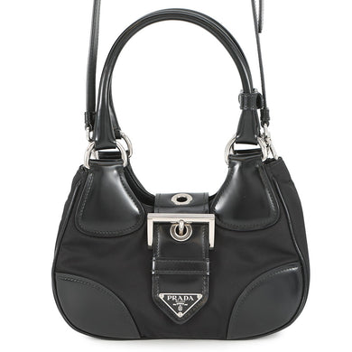 PRADA Moon Re-Nylon 2way Handbag Black1BA381 Leather Nylon