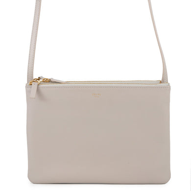 CELINE Trio Shoulder Bag Gray171453 Leather Size Large