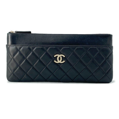 CHANEL Matelasse Clutch Bag Black Lambskin