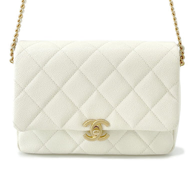 CHANEL Matelasse ChainShoulder Bag White Caviar Leather