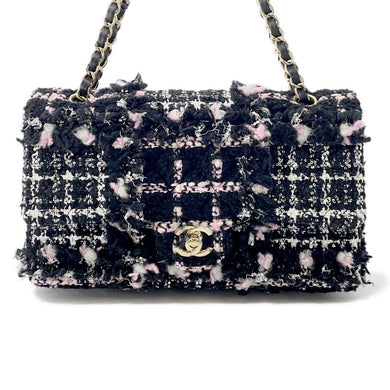 CHANEL Matelasse ChainShoulder Bag Black/White/PinkA01112 Tweed Lambskin Sequins Size 25