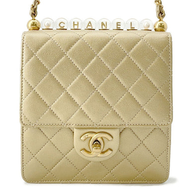 CHANEL Matelasse Clear Pearl Shoulder Bag GoldAS0584 Goatskin Leather