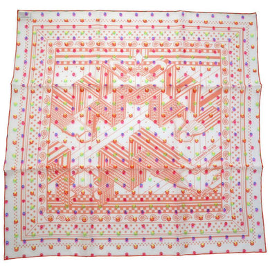 HERMES Carre Patisserie Française Size 90 Orange/Rose/Gris Silk100%