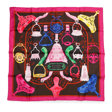 HERMES Carre Stirrup・Remix Etriers Remix Size 90 Fuchsia/Marron/Multicolor Silk 100%