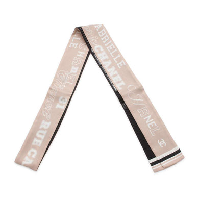 CHANEL Scarf logo design Beige/Black Silk100%