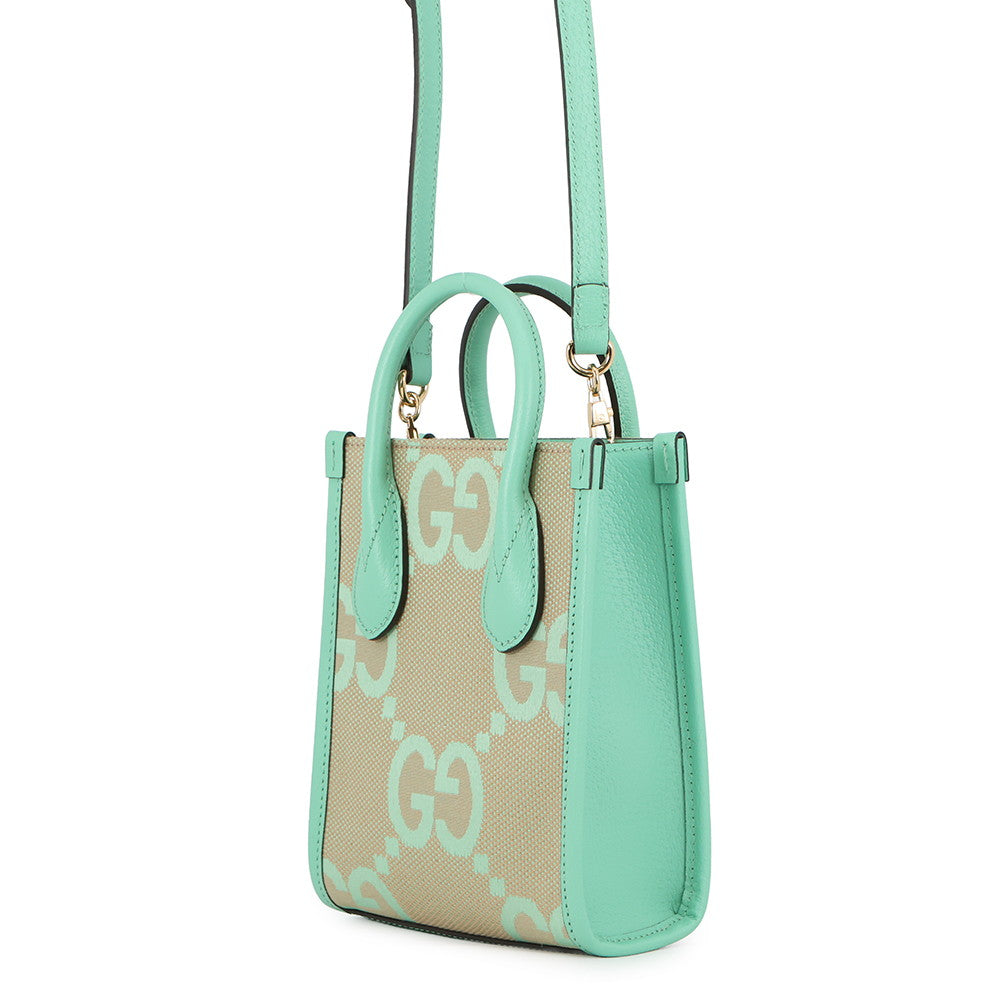 GUCCI Jumbo GG 2-way Mini Tote Beige/Light Green671623 Jumbo GG Canvas Leather