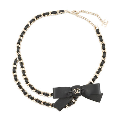 CHANEL ChainBelt Size 70/28 BlackAAB382 Calf Leather Metal