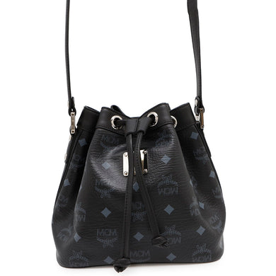 MCM Drawstring Shoulder Bag Black Leather