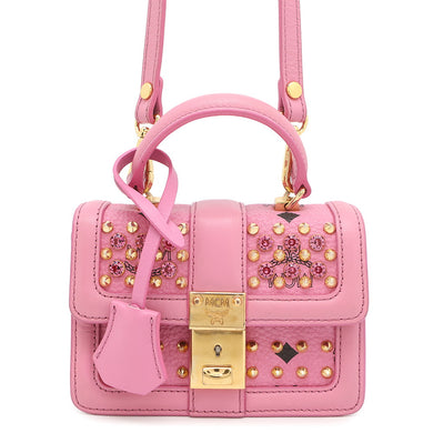 MCM Visetos Studded 2-Way Bag PinkMWE4SVI76PK001 Leather Rhinestone