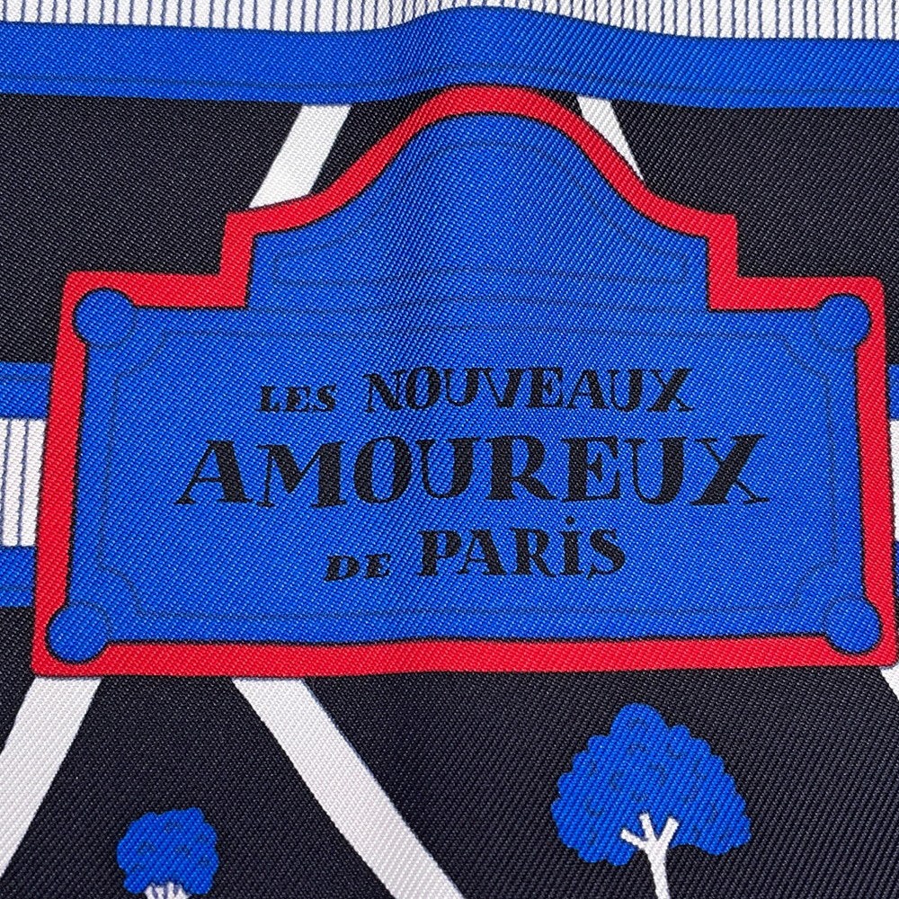 HERMES Carre LES NOUVEAUX AMOUREUX FE PARIS Size 90 Black/Blue/Red Silk100%