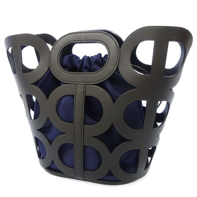 HERMES Chaine d'Ancre Black/blue Madame Calf Leather ・Silk