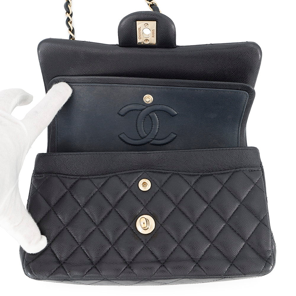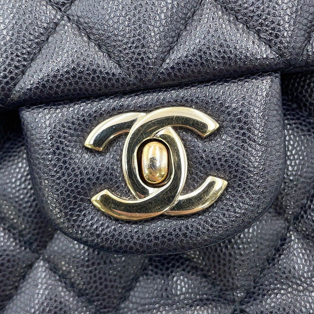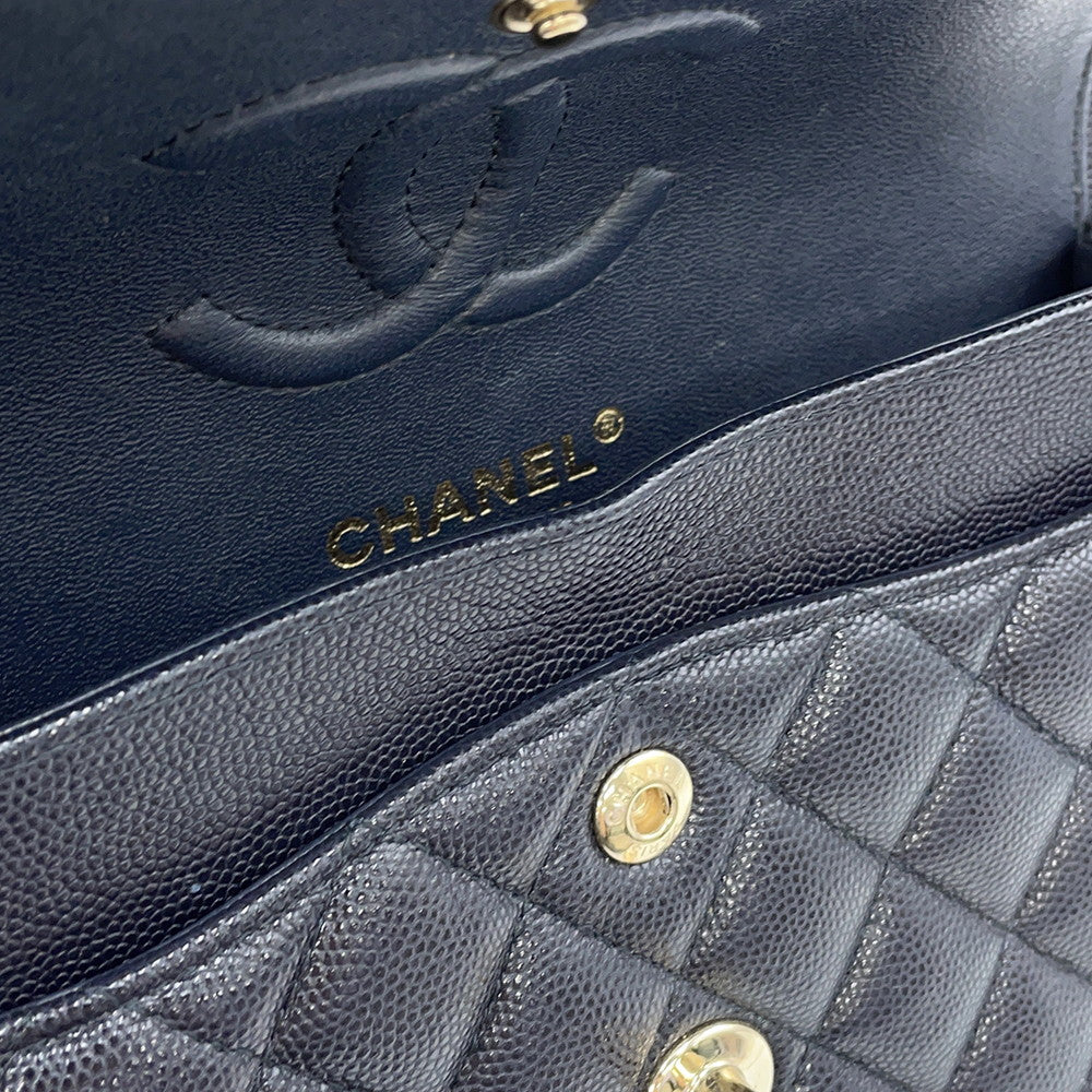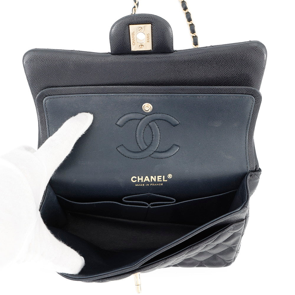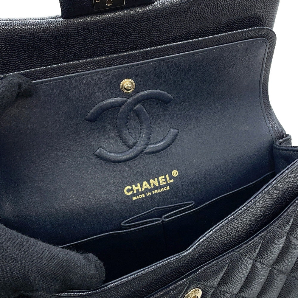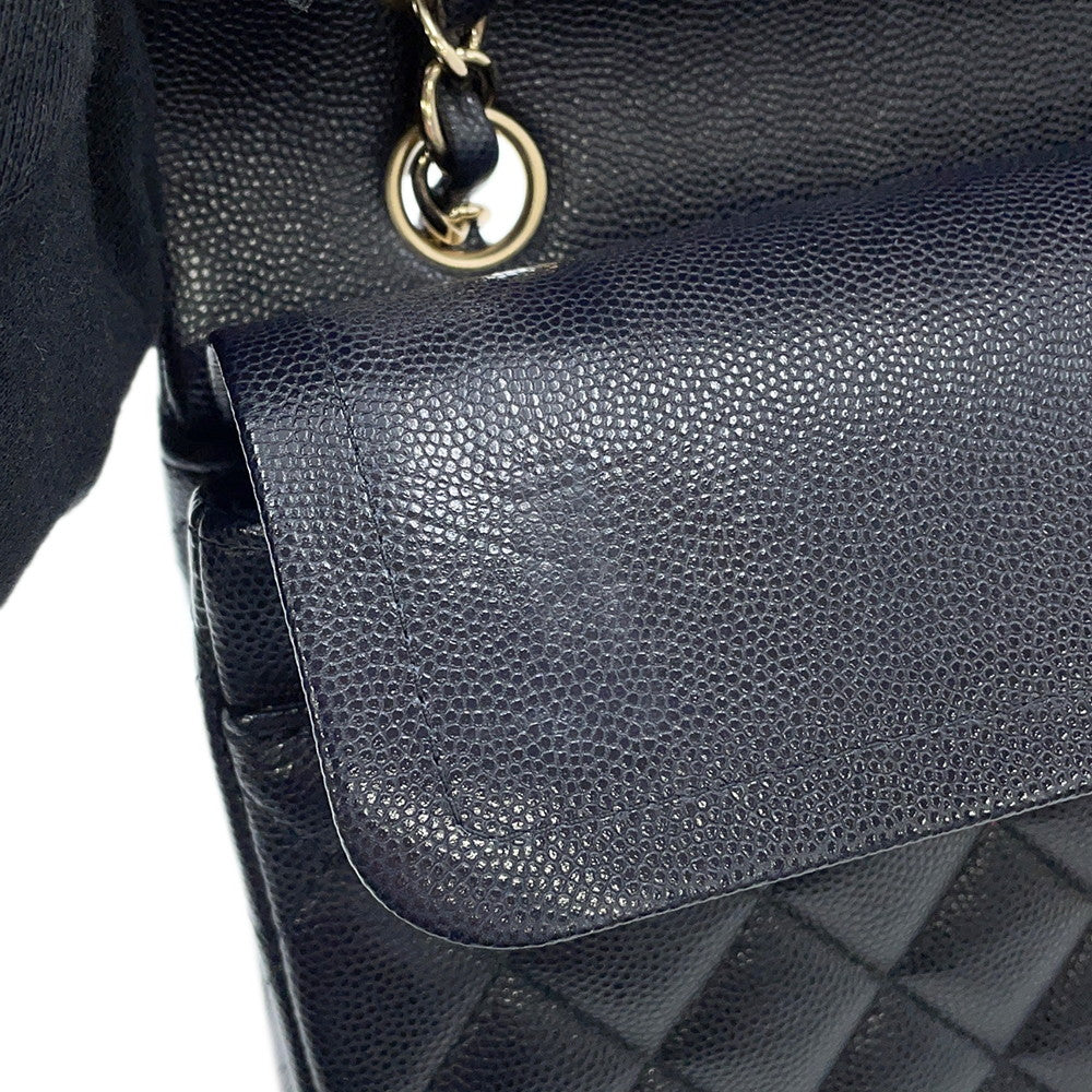 CHANEL Matelasse W Flap W Chain Shoulder Dark NavyA01113 Caviar Leather Size 23