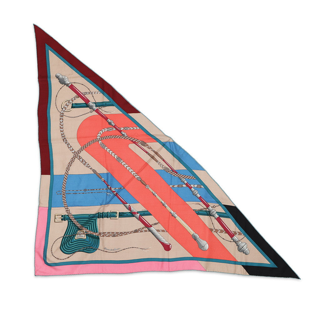 HERMES Carre Triangle "Clic" Rose・Vif / Blue / MulticolorH361662S 06 Cashmere70% Silk30%