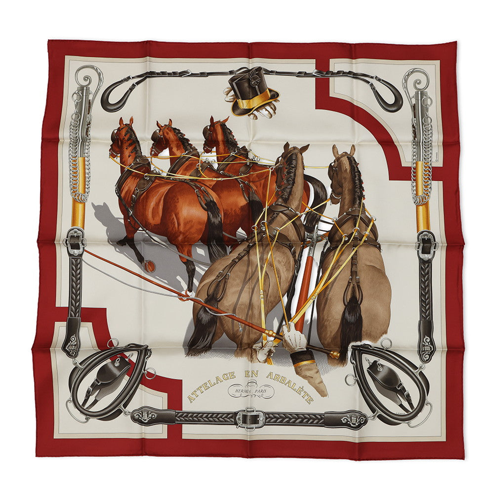 HERMES Carre 90 《Arcuate connection》 Size 90 Rouge・Cui / Greige / Halzan Silk100%