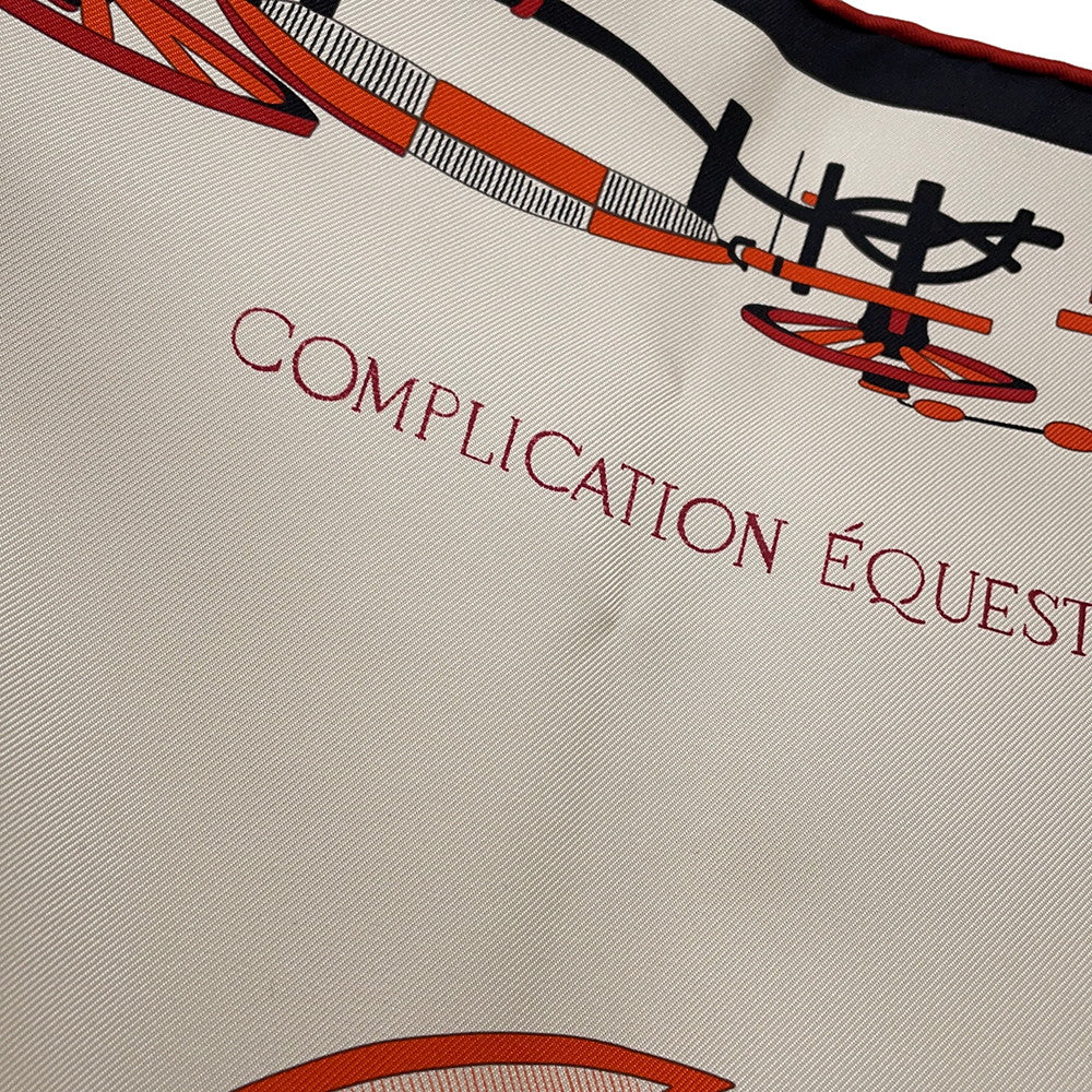 HERMES Carre COMPLICATION EQUESTRE Size 90 Claim/Orange/Black Silk100%