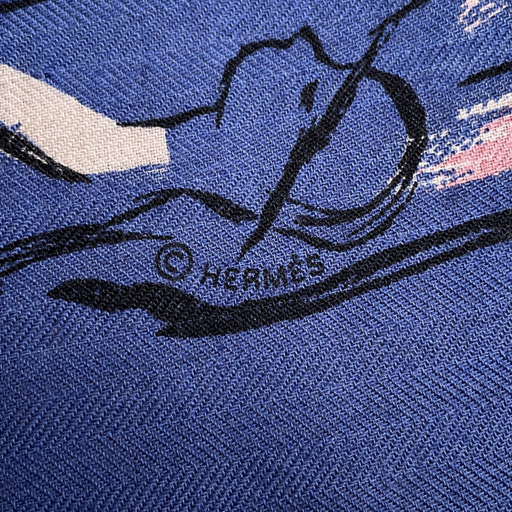 HERMES Giant Square "Paddock" Size 140 Blue/Marron Cashmere70% Silk30%