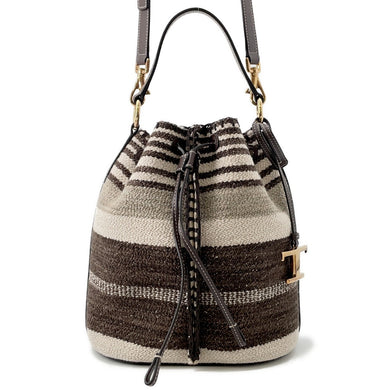 TOD’S Drawstring Bag2WAYBag Brown/Gray Canvas Leather