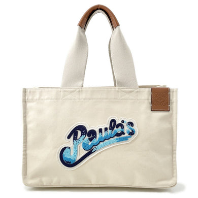 LOEWE Paula Ibiza Tote Bag Ivory/Blue Canvas Leather