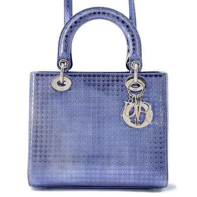 Dior Lady Dior 2WAY Handbag MetalicPurple Leather Size Medium