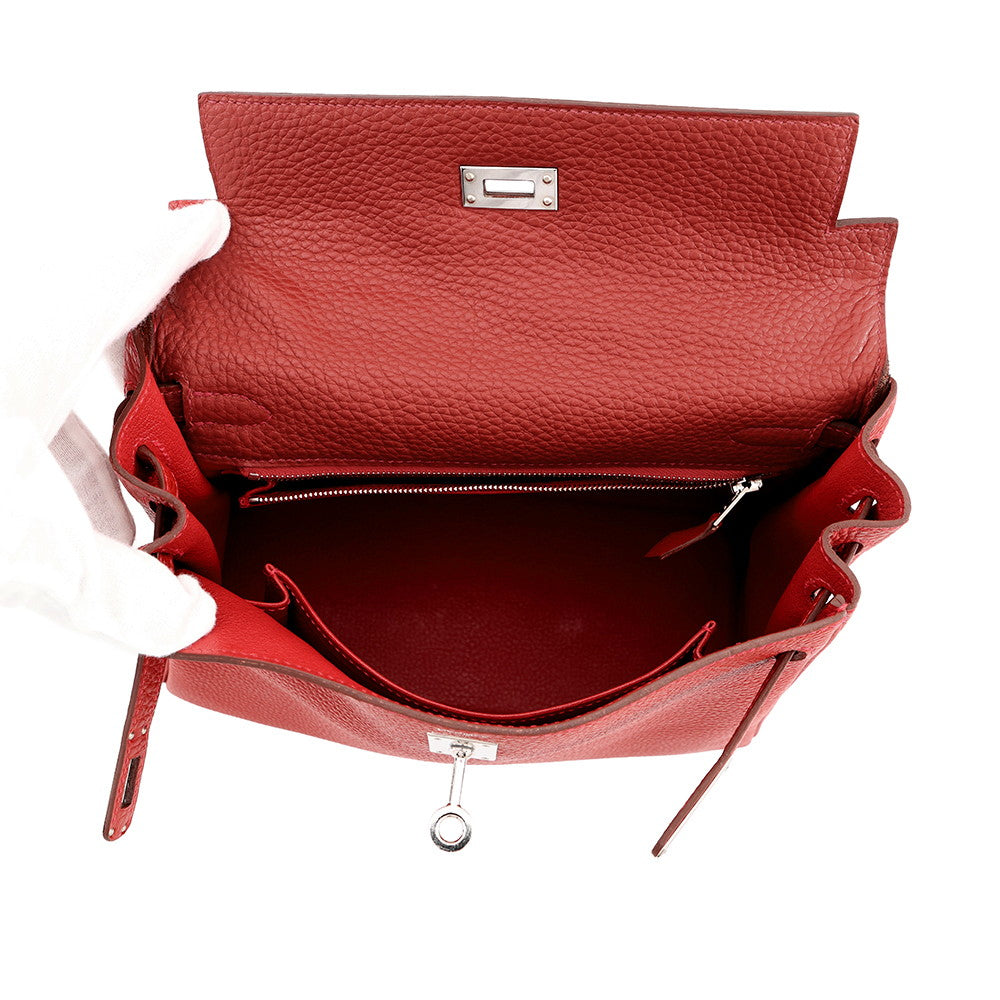 HERMES Kelly Retourne Rouge Garance Togo Leather Size 25