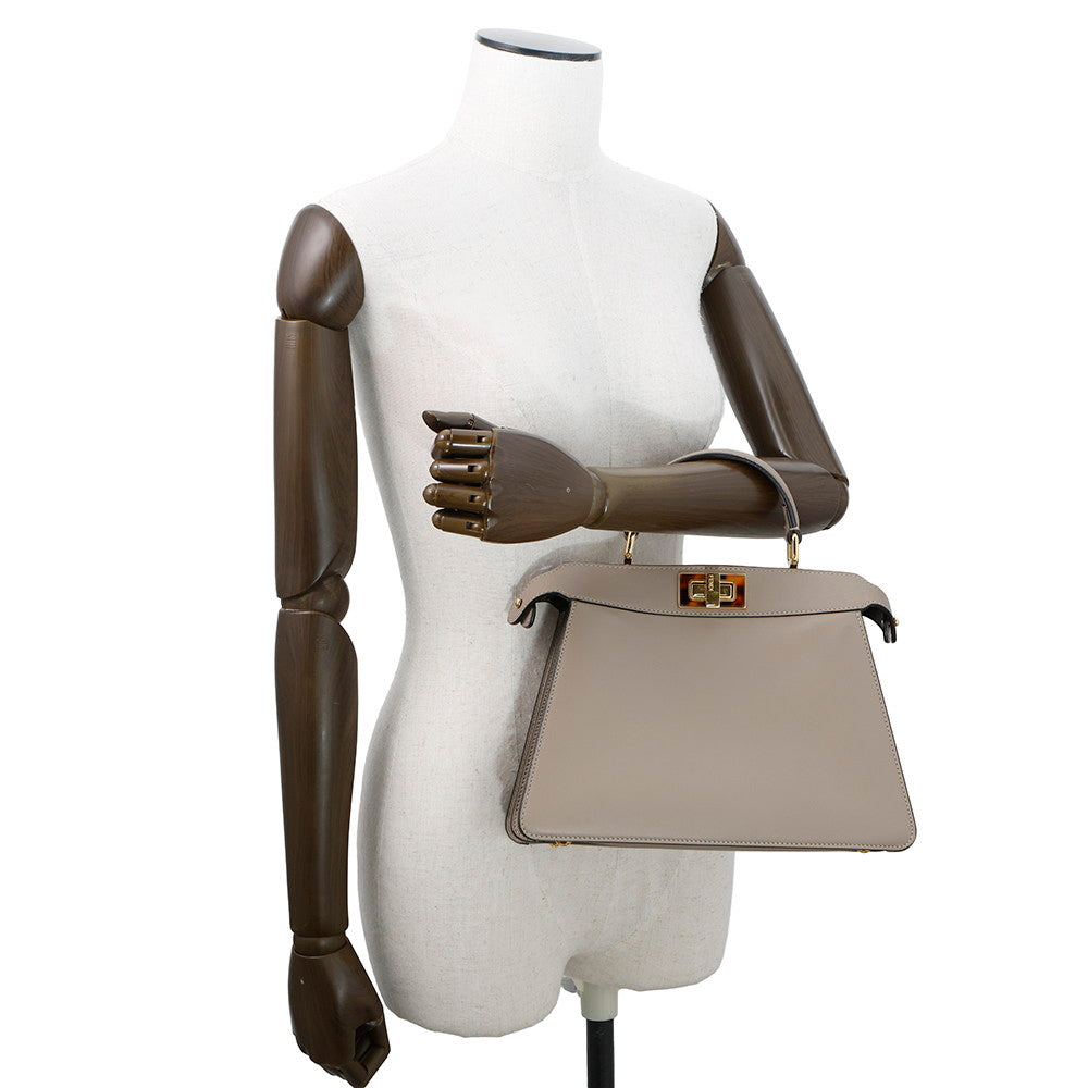 FENDI Peekaboo Icy You Beige8BN327 Calf Leather Size Small
