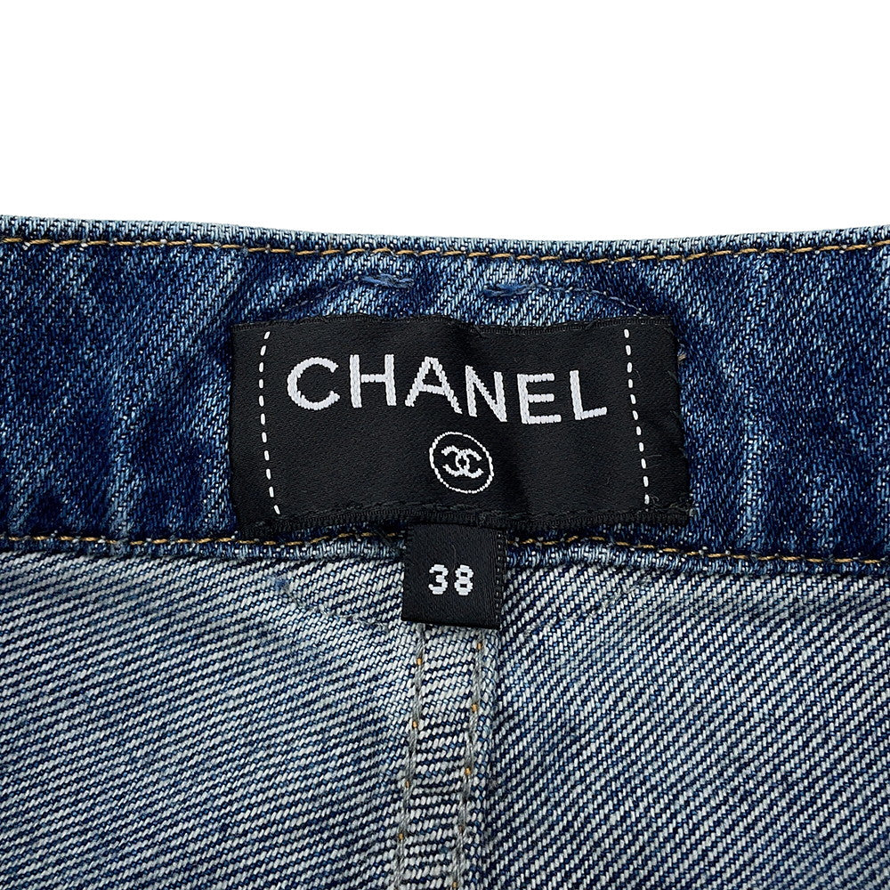 CHANEL CC Logo Washed Denim Pants Size 38 BlueP76791 Cotton100%