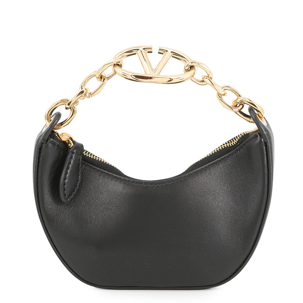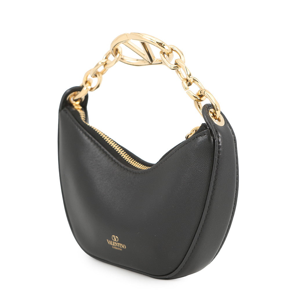 Valentino Garavani V Logo Moon Chain Handbag Black Leather