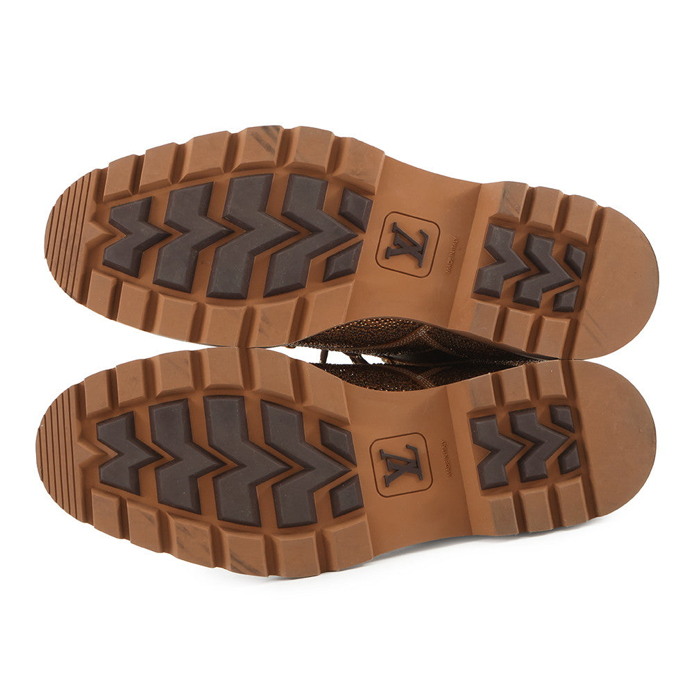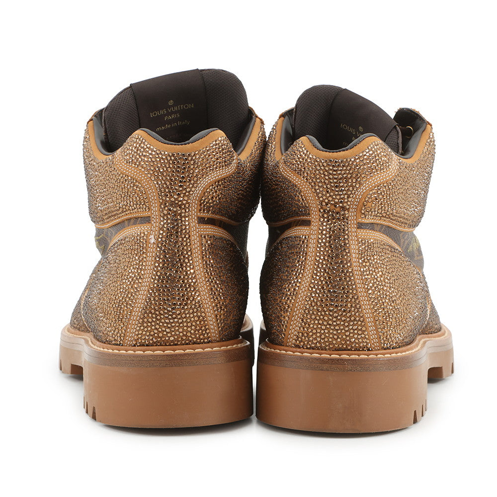 LOUIS VUITTON Oberkampf Line EncreBoots Brown/Gold Leather Rhinestone Size 10