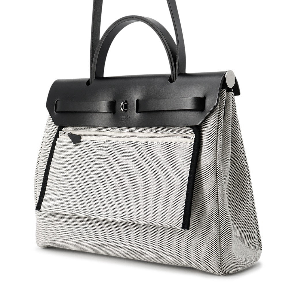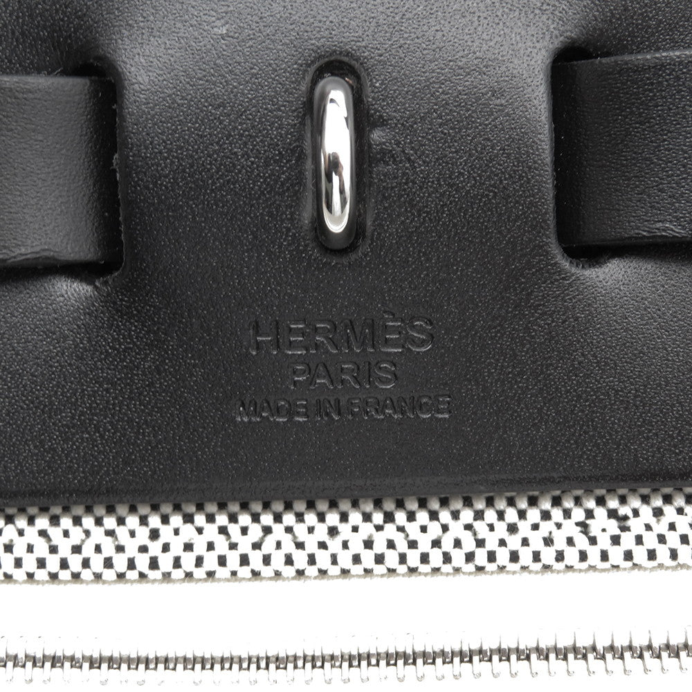HERMES Herbag Zip Pegasus Pop Black/Blue Indigo/Ecru Toile H Vache Hunter Leather Size PM/31