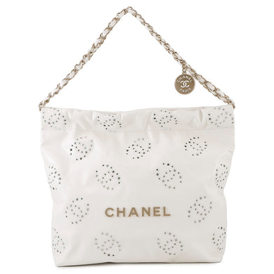 CHANEL ★CHANEL22 ChainShoulder Bag Punching WhiteAS3260 Shiny Calf Leather Size Small