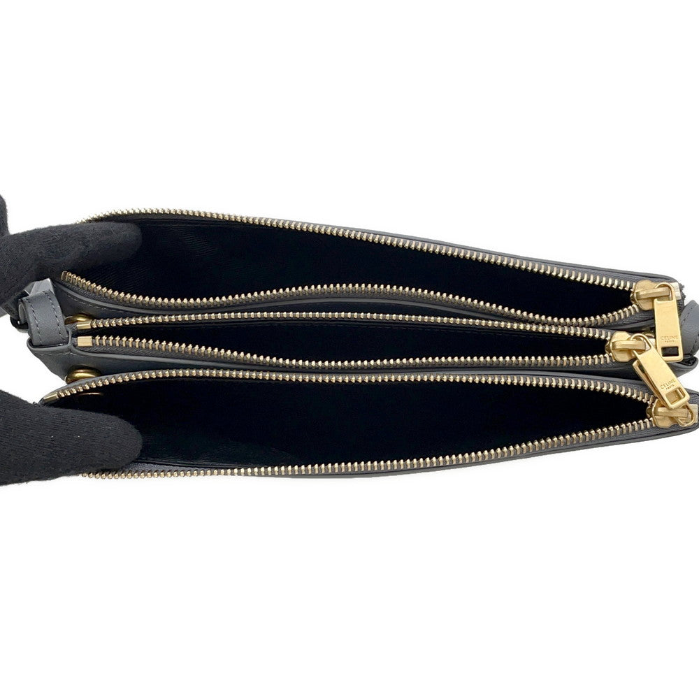 CELINE Trio Shoulder Bag Gray171453 Leather Size Large