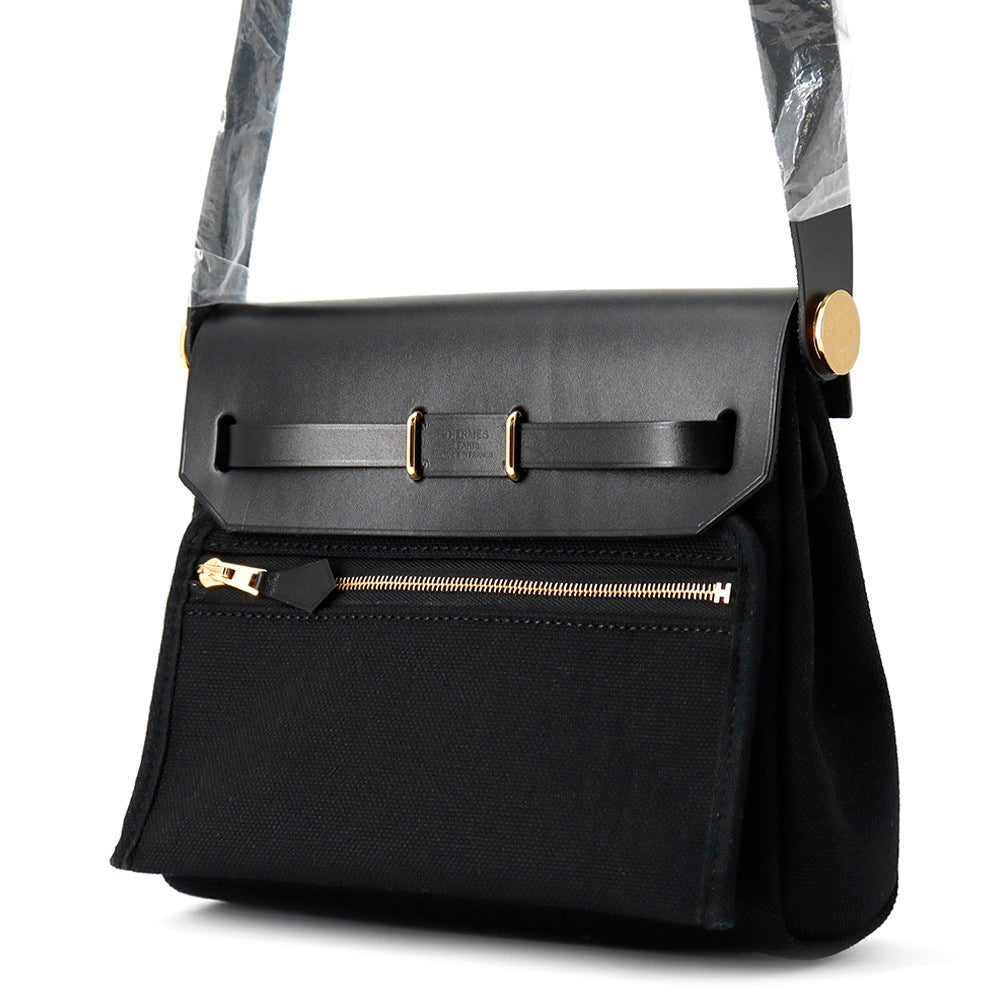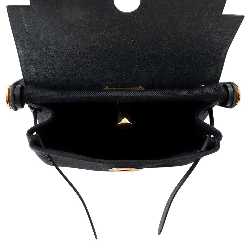 HERMES Herbag zip Black Toile Military Vache Hunter Leather Size Mini