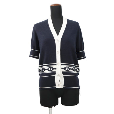 HERMES Chaine d'Ancre knit cardigan Size 36 Blue・NoirH5E2749DF Cashmere50% Silk50%