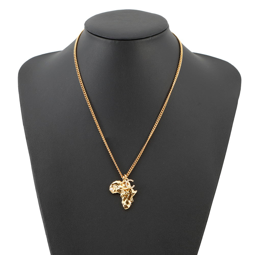 CHANEL CC Logo African Continent Motif Necklace Gold Metal Faux Pearl Rhinestone