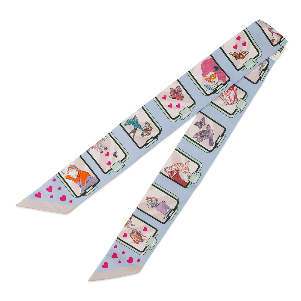HERMES Twilly HERMES STORY Blue Pale/Rose/Vert063875S Silk100%