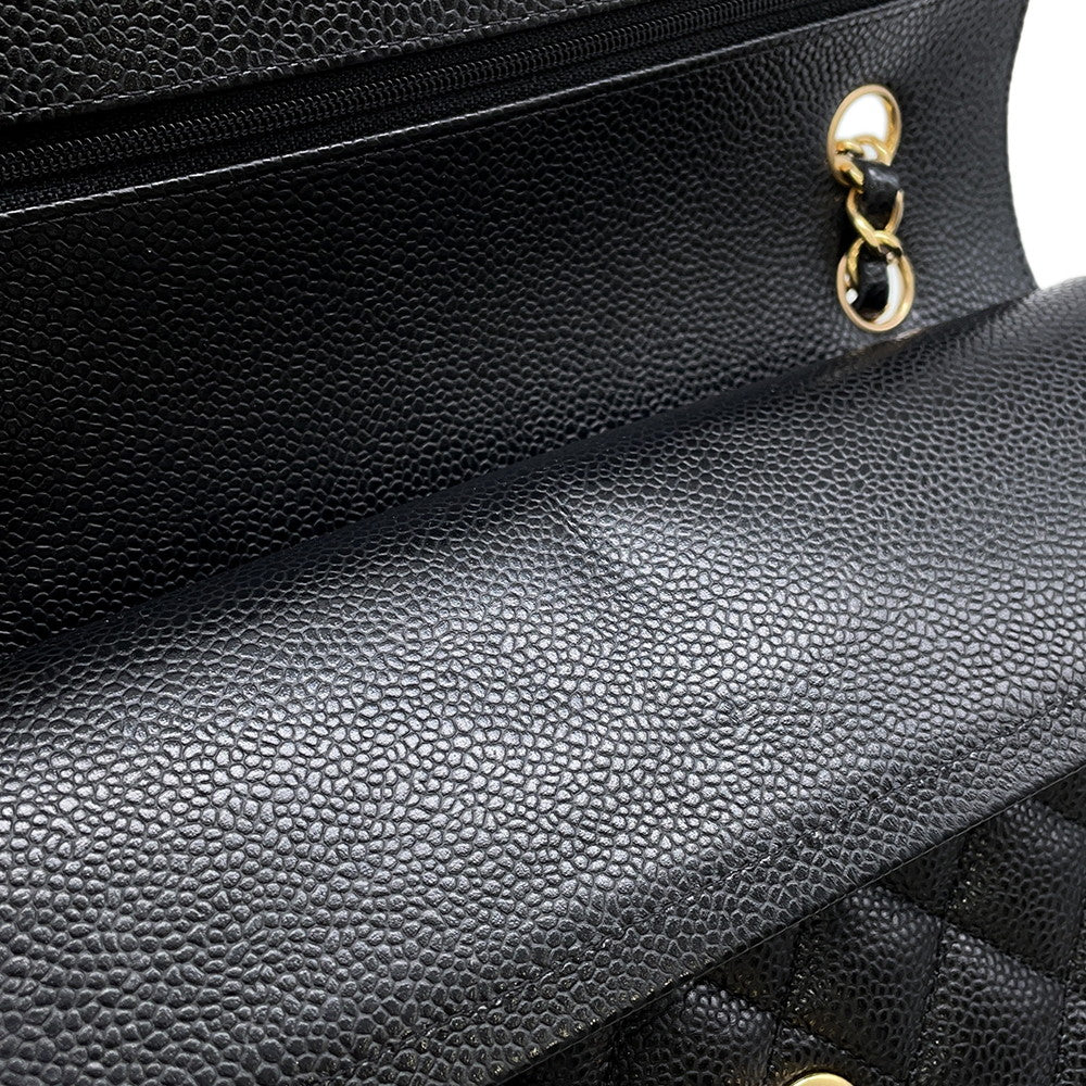 CHANEL Matelasse W-Flap W-Chain Shoulder Bag BlackA01112 Caviar Leather Size 25