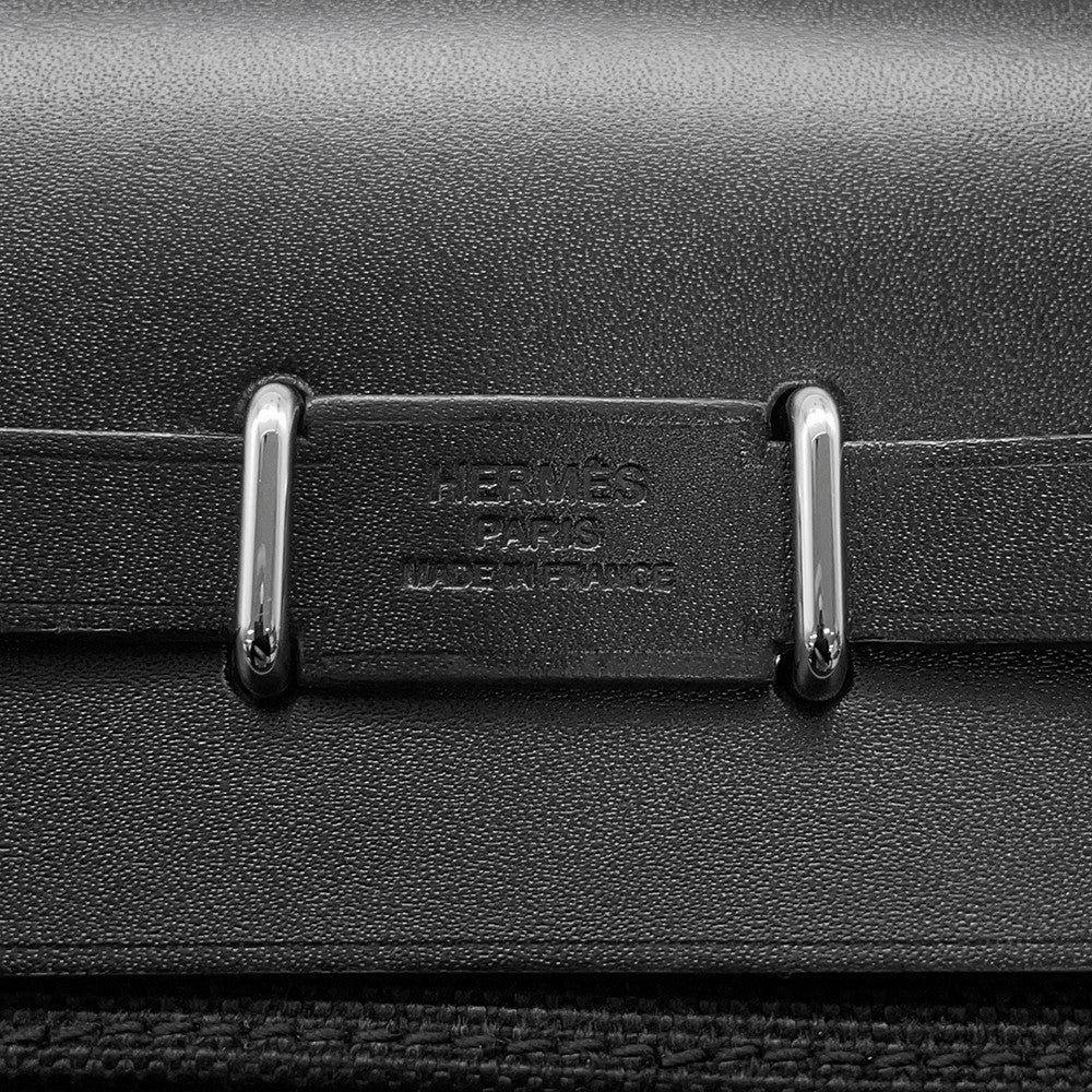 HERMES Herbag zip Black Toile Military Vache Hunter Leather Size Mini