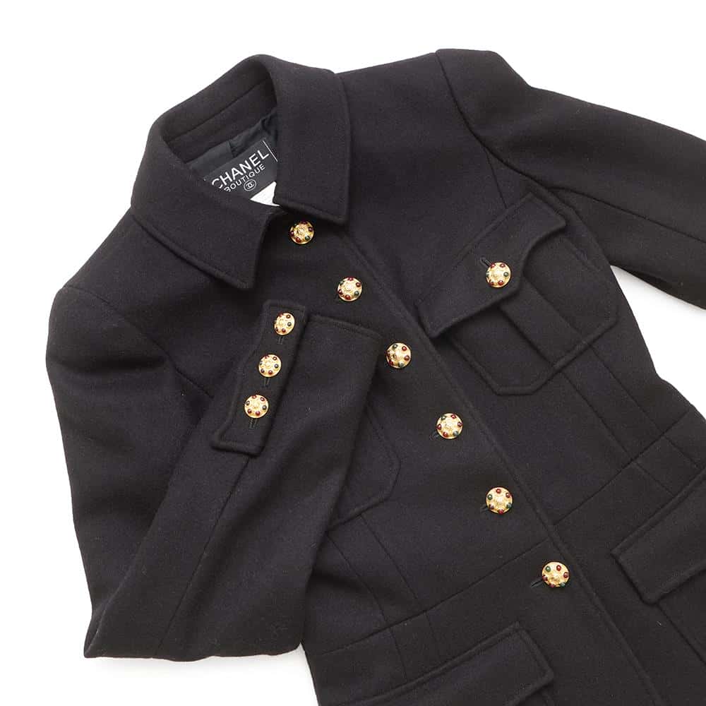 CHANEL Gripoa Button Jacket Size 38 BlackP08277 Wool 100%