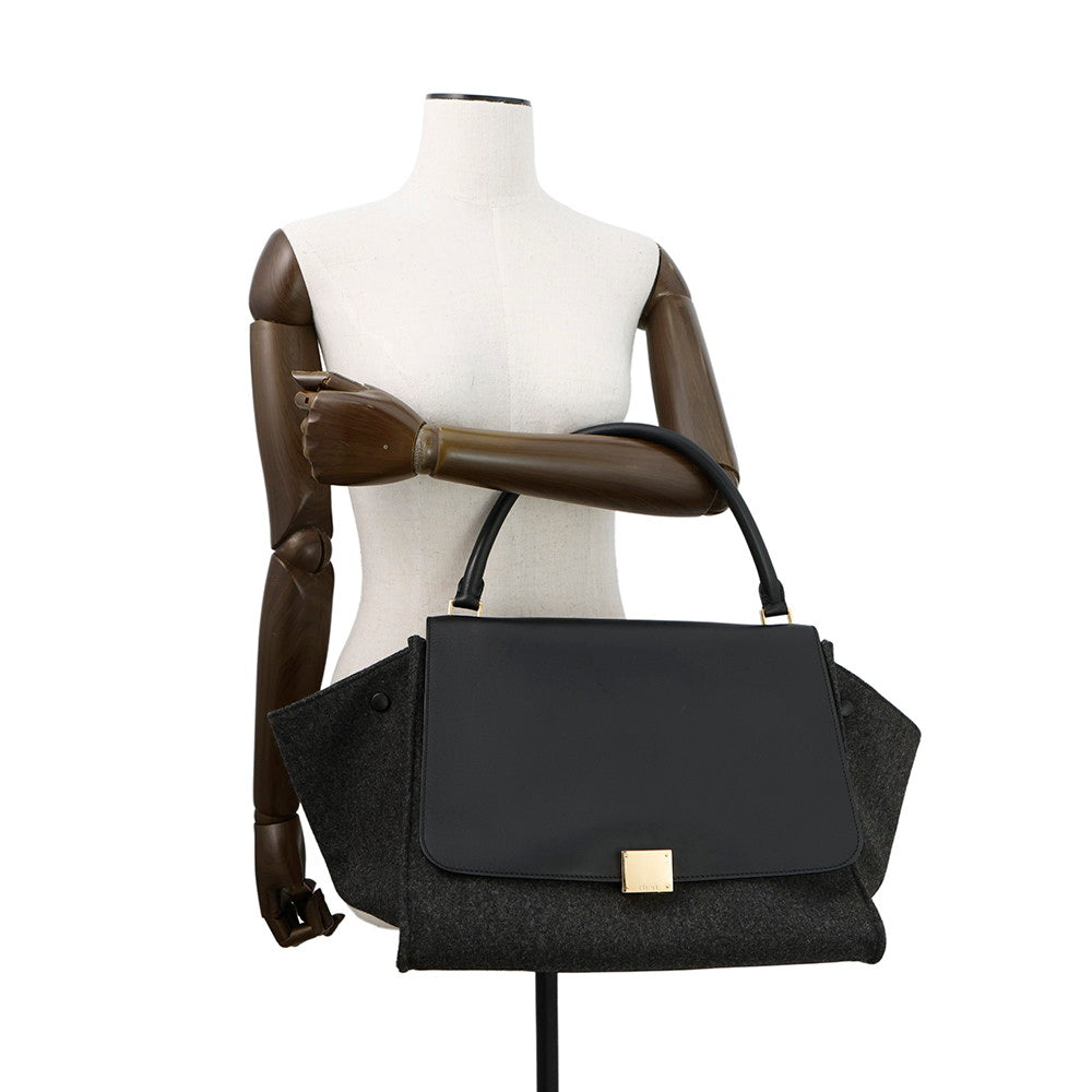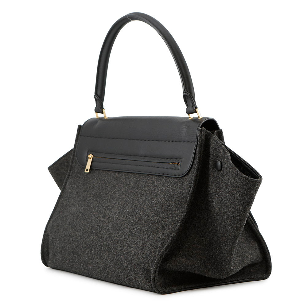 CELINE Trapeze Black Felt Leather