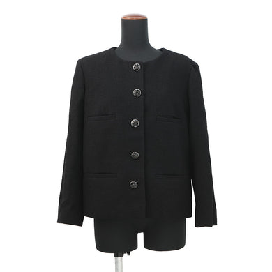 CHANEL Camellia No-Collar Jacket Size Chronomat 44 BlackP52753 Wool 76% Nylon13% Silk11%