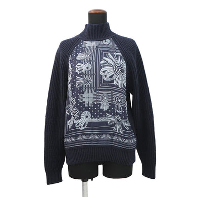 HERMES Horse Ribbon Twill High-Neck Knit Size 34 Navy Silk100% Cashmere99% Nylon1%