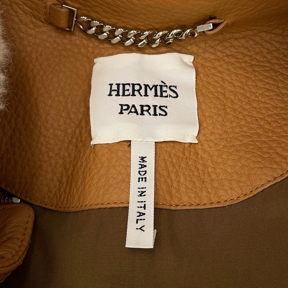 HERMES Leather bomber jacket Size 36 Light brown Deer Leather Shearling