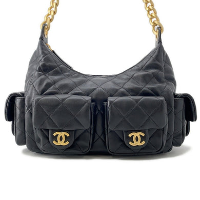 CHANEL As Earth Round Chain Bag BlackA91946 Leather