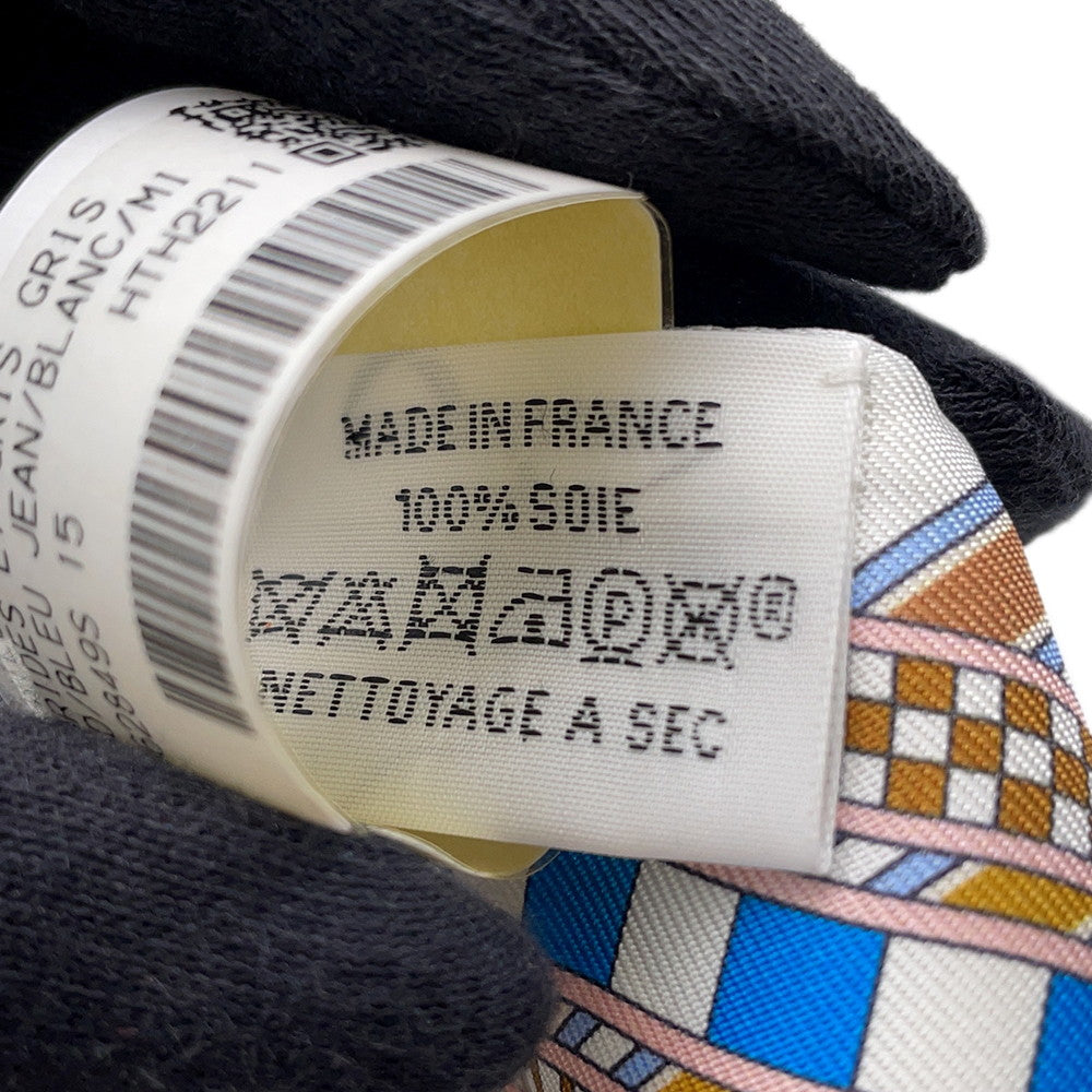 HERMES Twilly Brides et Gris-Gris Blue Jean/White/MulticolorH062849S Silk100%
