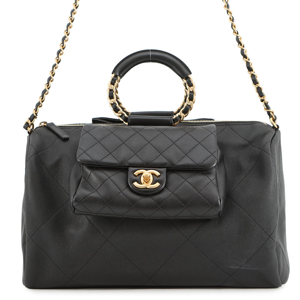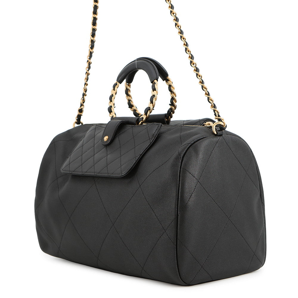 CHANEL Bowling Bag BlackAS1360 Caviar Leather Lambskin Size Large