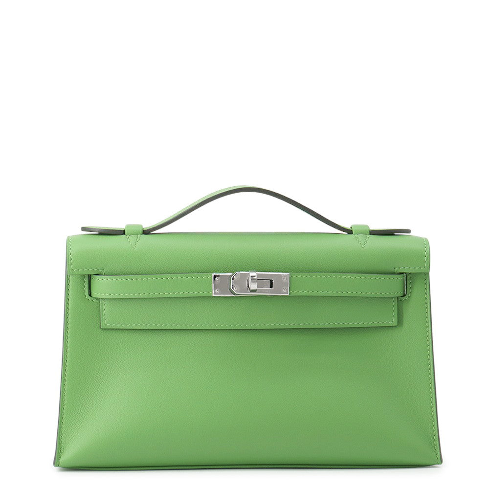 HERMES PochetteKelly Vert Yucca Swift Leather