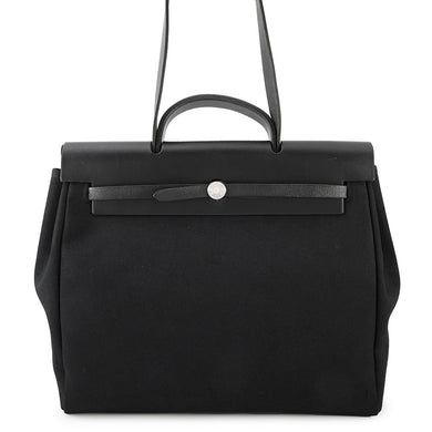 HERMES Herbag Black Toile Officier LeatherVendor HERMES