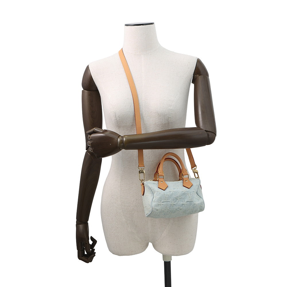LOUIS VUITTON Nano Speedy Sky BlueM11212 Monogram Denim Size Nano